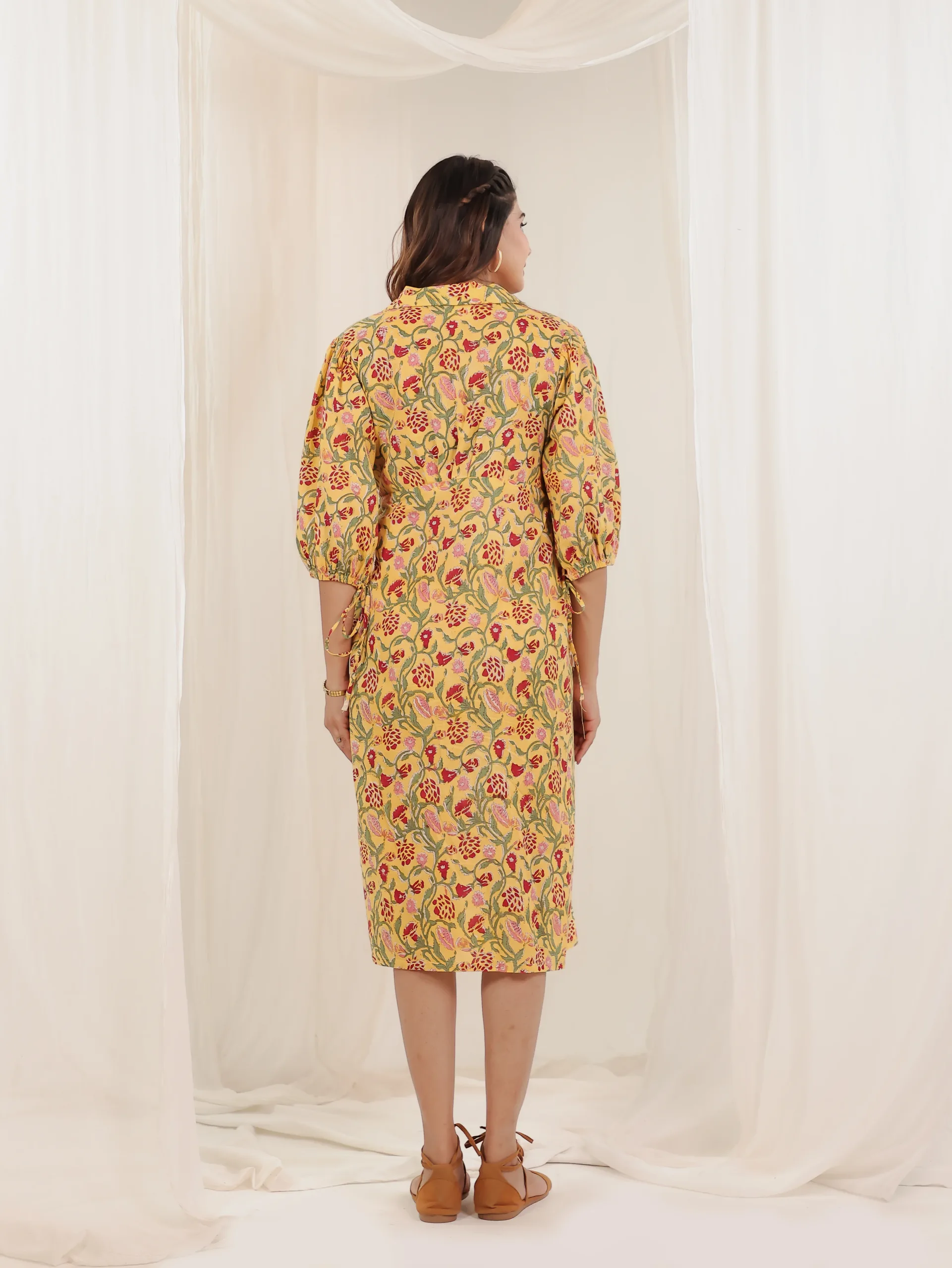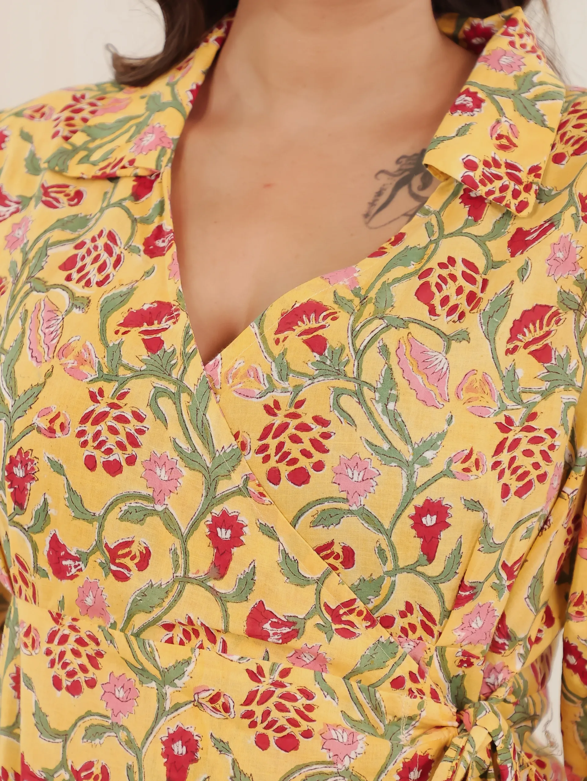 Saffron Bloom Wrap Dress – Yellow & Pink